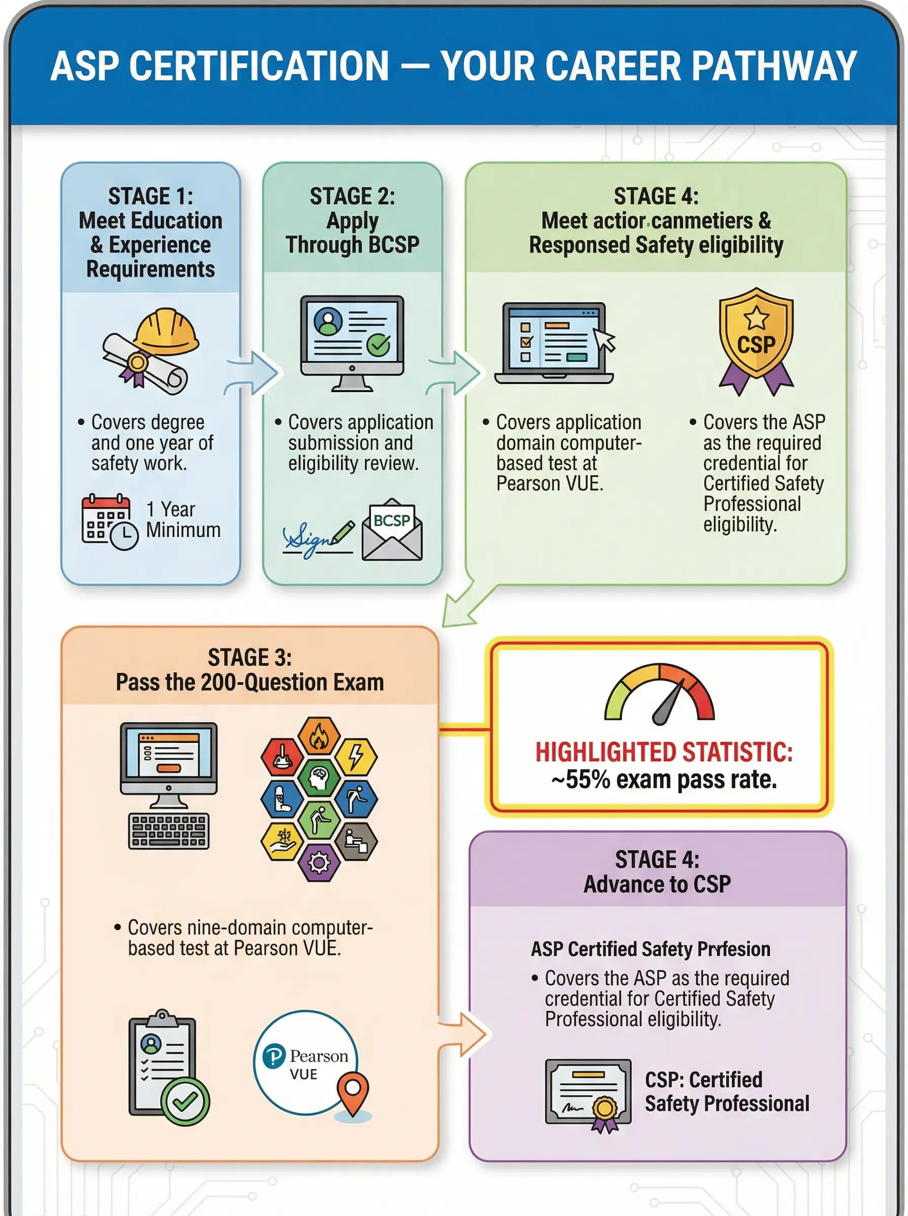 The strategic insight here is that much of the ASP study material overlaps with CSP content. Candidates who study thoroughly for the ASP are simultaneously building their CSP knowledge base. I have known professionals who passed both exams within a year of each other by leveraging this overlap.