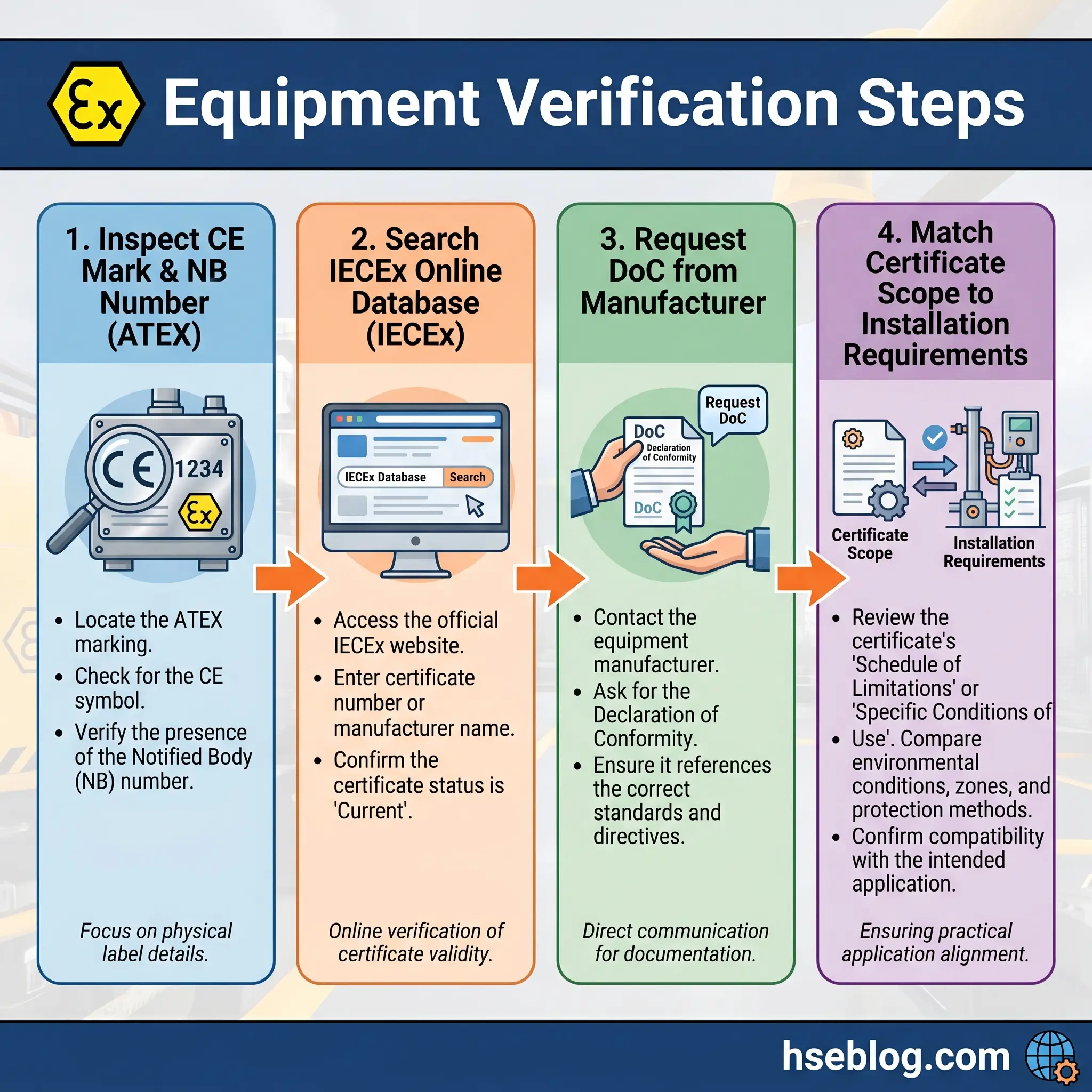 Field Test: Before accepting any Ex equipment on site, pull the certificate number from the nameplate and verify it against the IECEx online database or request the ATEX DoC directly from the manufacturer. If either takes more than a few minutes to produce, that is your first red flag.