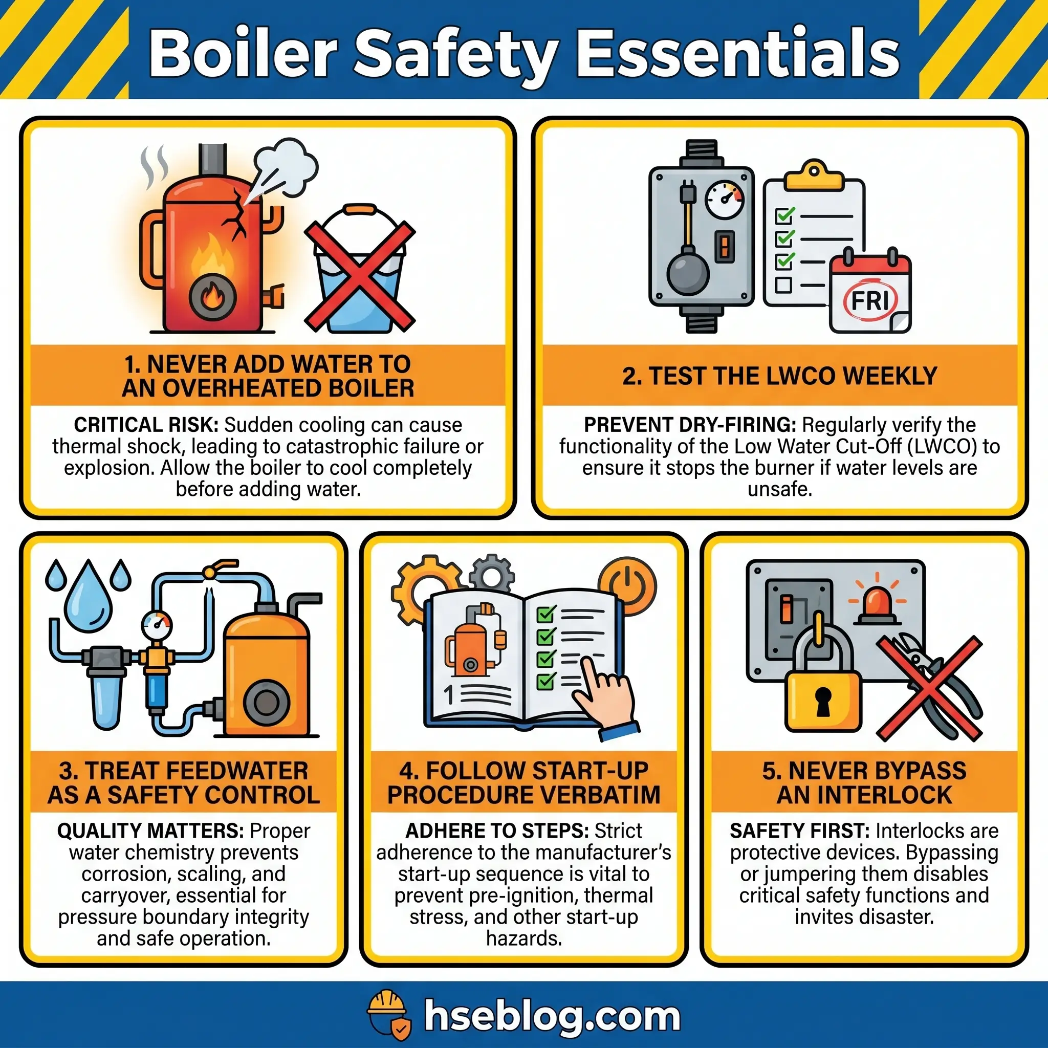 Audit Point: If a site cannot show the last weekly LWCO blowdown record and the last monthly safety-interlock function-test record on demand, the paper layer of the defence has already failed — whatever the hardware is doing.