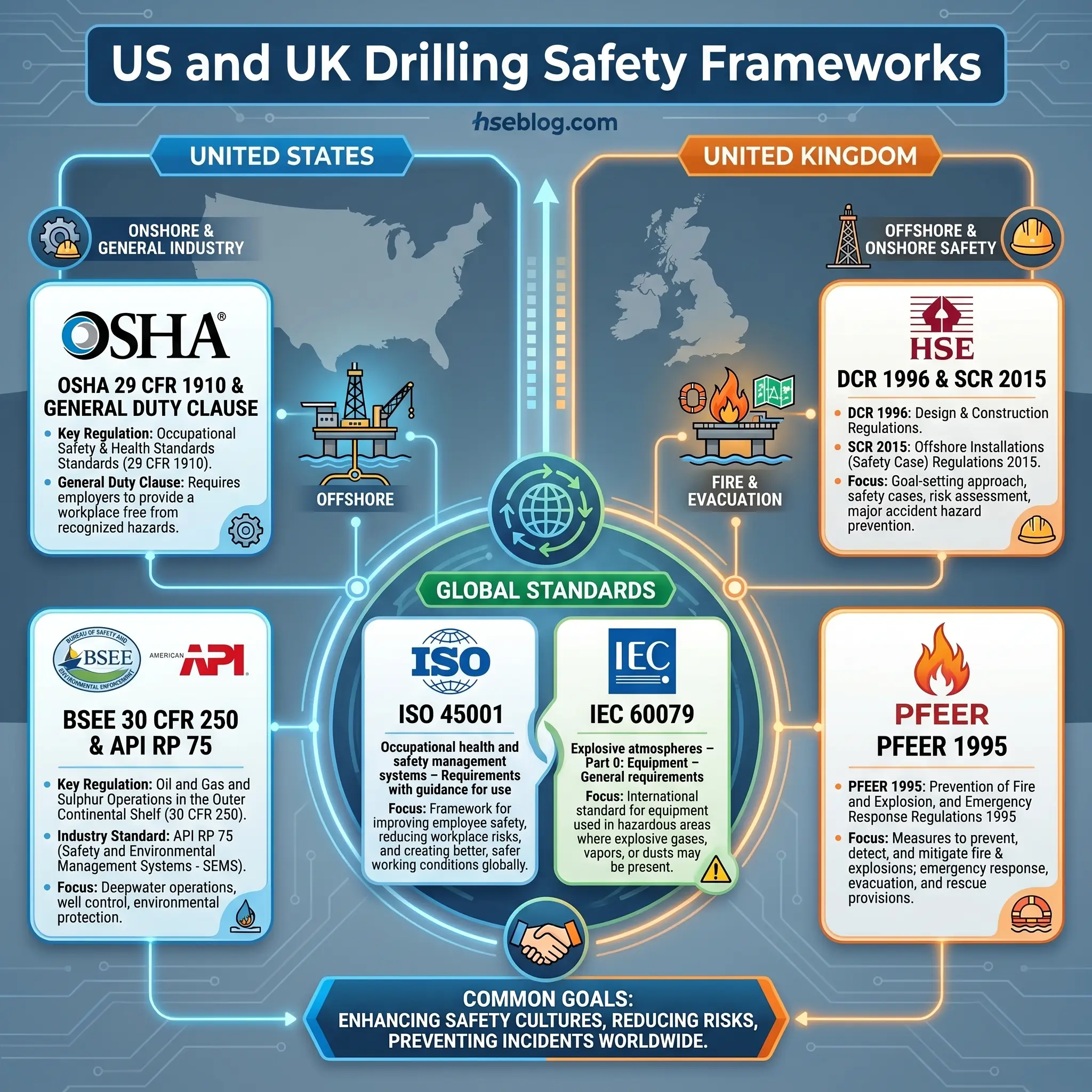 The regulatory landscape for drilling safety is fragmented by jurisdiction, and the most damaging mistake a multi-country operator can make is to treat the two regimes as interchangeable. They are not.