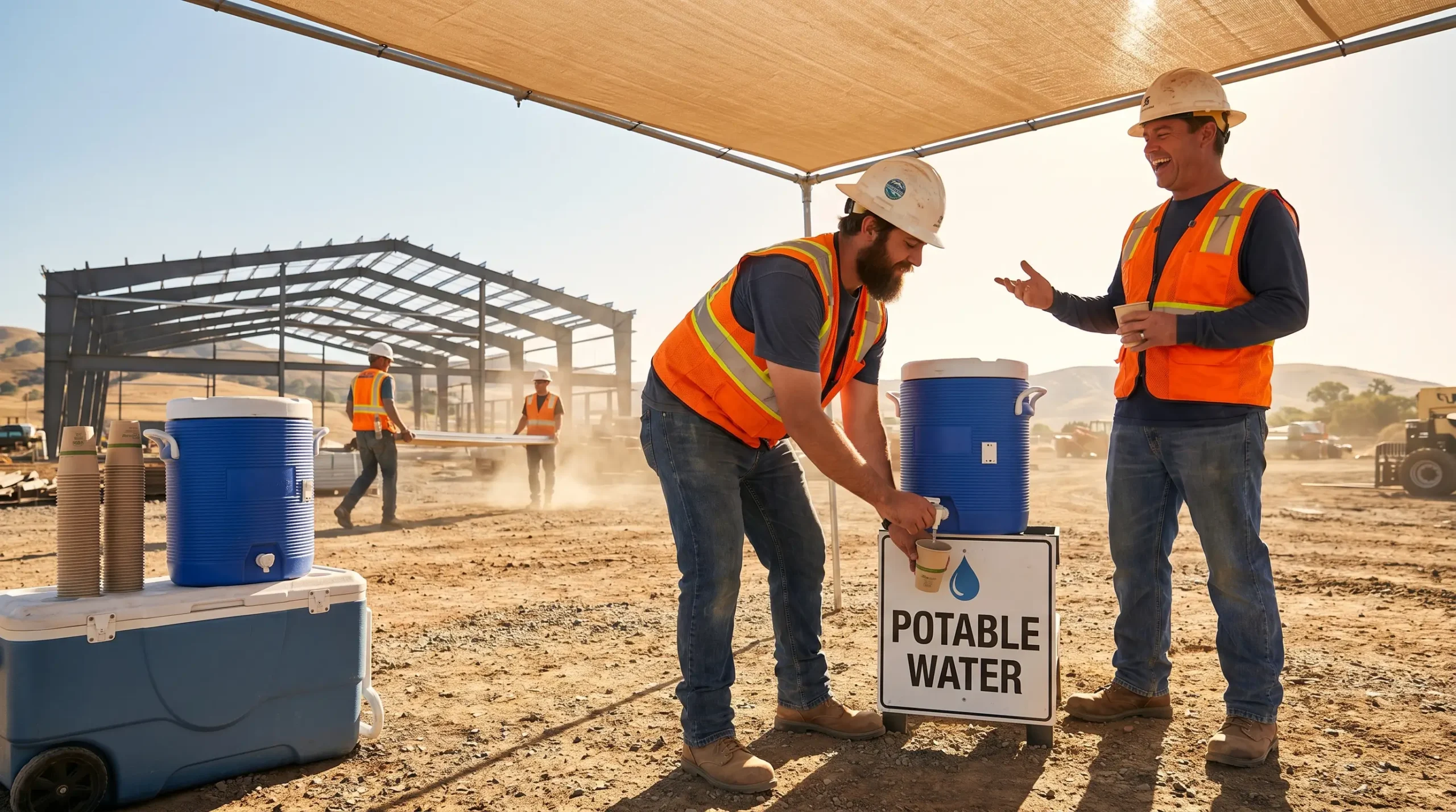 Water temperature is an area where regulation is deliberately vague — and where operational judgment fills the gap. Federal OSHA’s proposed heat rule uses the phrase “suitably cool.” Cal/OSHA requires “fresh, pure, suitably cool.” No jurisdiction specifies an exact temperature in degrees. The practical interpretation across most compliance programs is water cool enough that workers will voluntarily drink it in sufficient volume — typically below 60°F (15°C) in heat conditions. Water at ambient temperature in a sun-exposed cooler on a 95°F day is technically available but functionally useless as a hydration control.