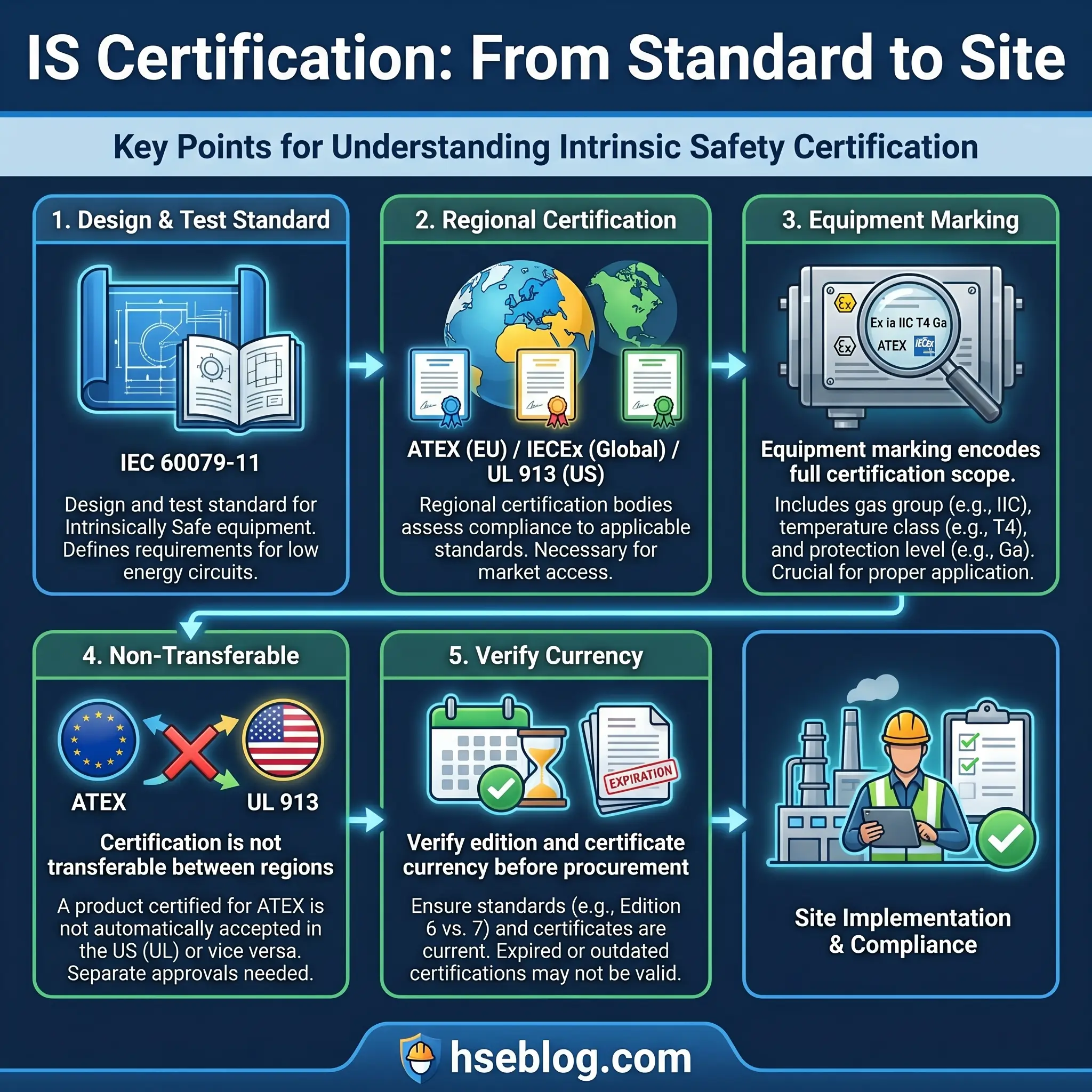 A device certified under ATEX is not automatically accepted under NEC/UL requirements. A device with an IECEx certificate does not satisfy ATEX without additional assessment by an EU Notified Body. Each regional certification requires independent testing and approval. I have seen procurement teams purchase IS equipment certified only under IECEx for installation in a facility subject to ATEX requirements — the devices sat in a warehouse for months while the manufacturer arranged EU certification.