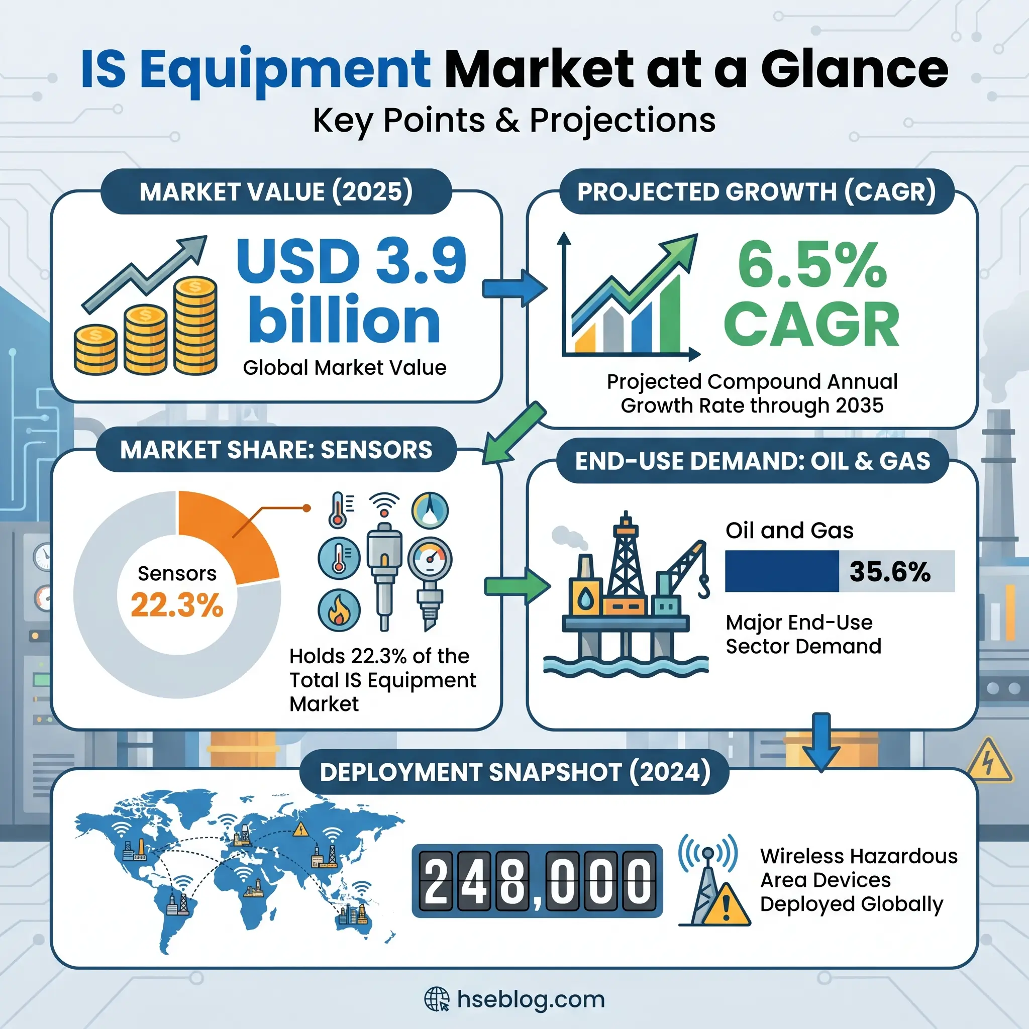 That principle — eliminating the ignition source rather than surviving the blast — defines intrinsically safe equipment and separates it from every other protection method used in hazardous environments. Across the chemical processing, oil and gas, pharmaceutical, mining, and grain handling industries, IS equipment protects workers in atmospheres where a single spark measured in microjoules can trigger catastrophic overpressure events. The global IS equipment market reached approximately USD 3.9 billion in 2025 and is projected to nearly double to USD 7.4 billion by 2035, growing at a compound annual growth rate of 6.5%. That growth reflects an operational reality: as process instrumentation becomes denser and digital transformation pushes more devices into classified areas, the demand for equipment that is inherently safe — not just protectively enclosed — accelerates. This article breaks down how intrinsic safety works at the circuit level, explains the classification systems that determine when you need it, compares it directly with explosion-proof alternatives, and provides a practical selection framework you can apply on your next project.