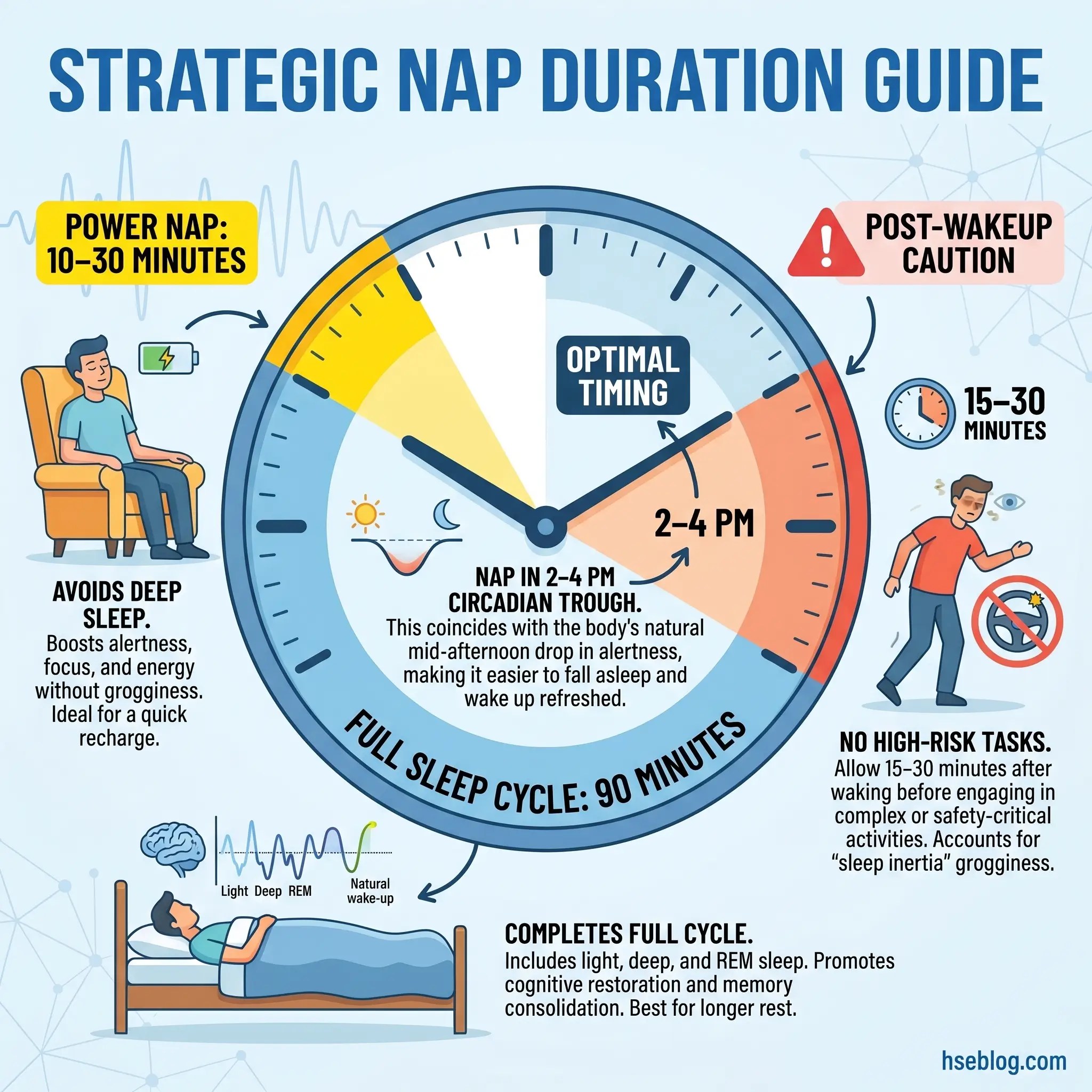 A defensible approach gives precise guidance on duration, timing, and post-nap recovery.