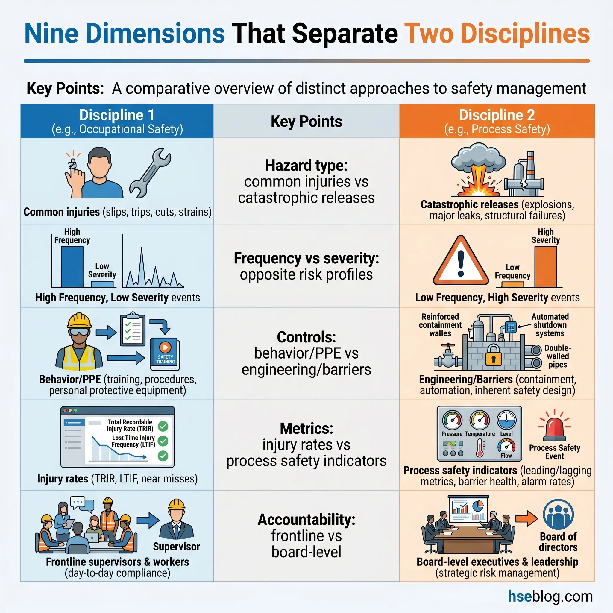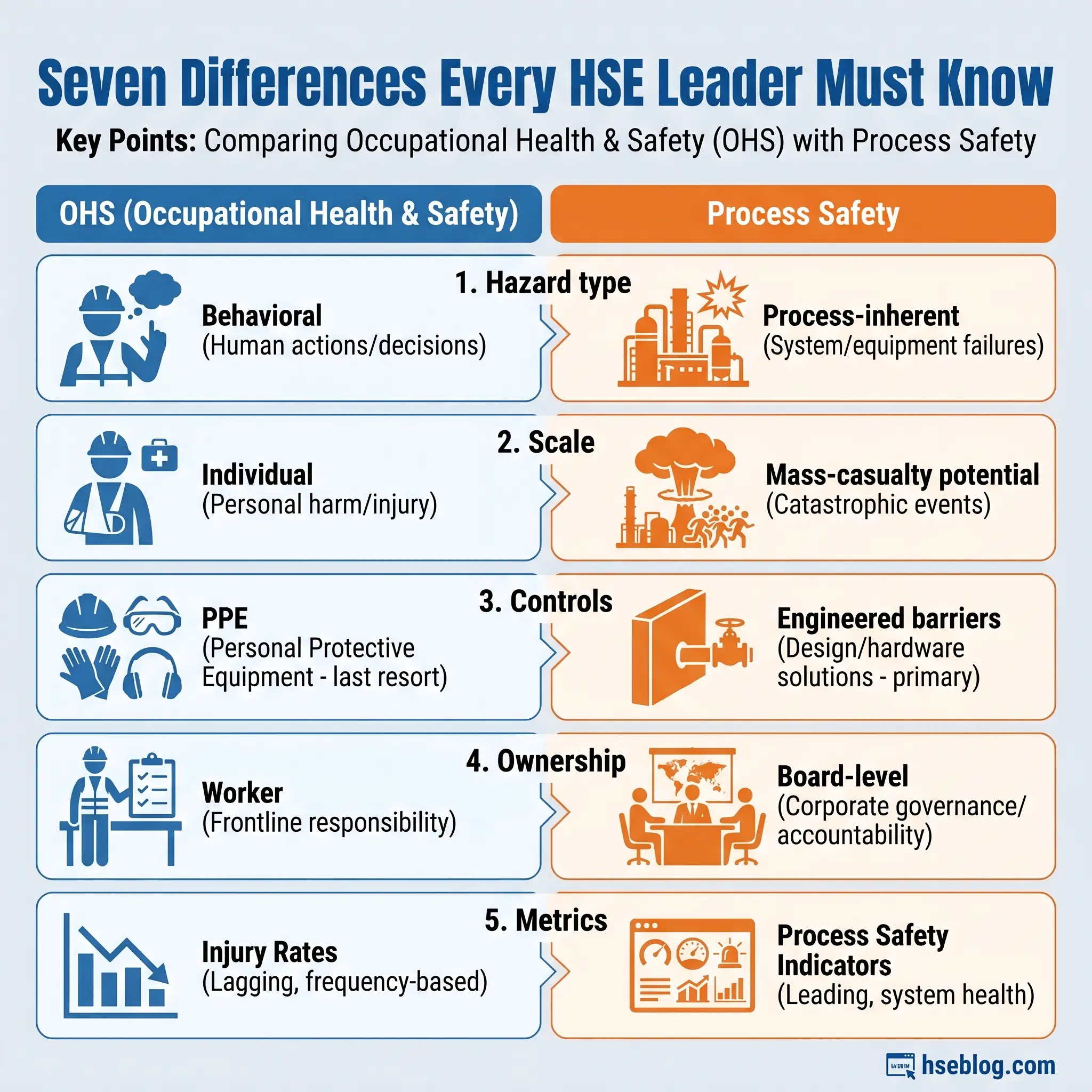 Understanding these seven distinctions is essential for anyone managing safety in a high-hazard operation. Each difference has direct implications for how you allocate resources, design management systems, and report to leadership.