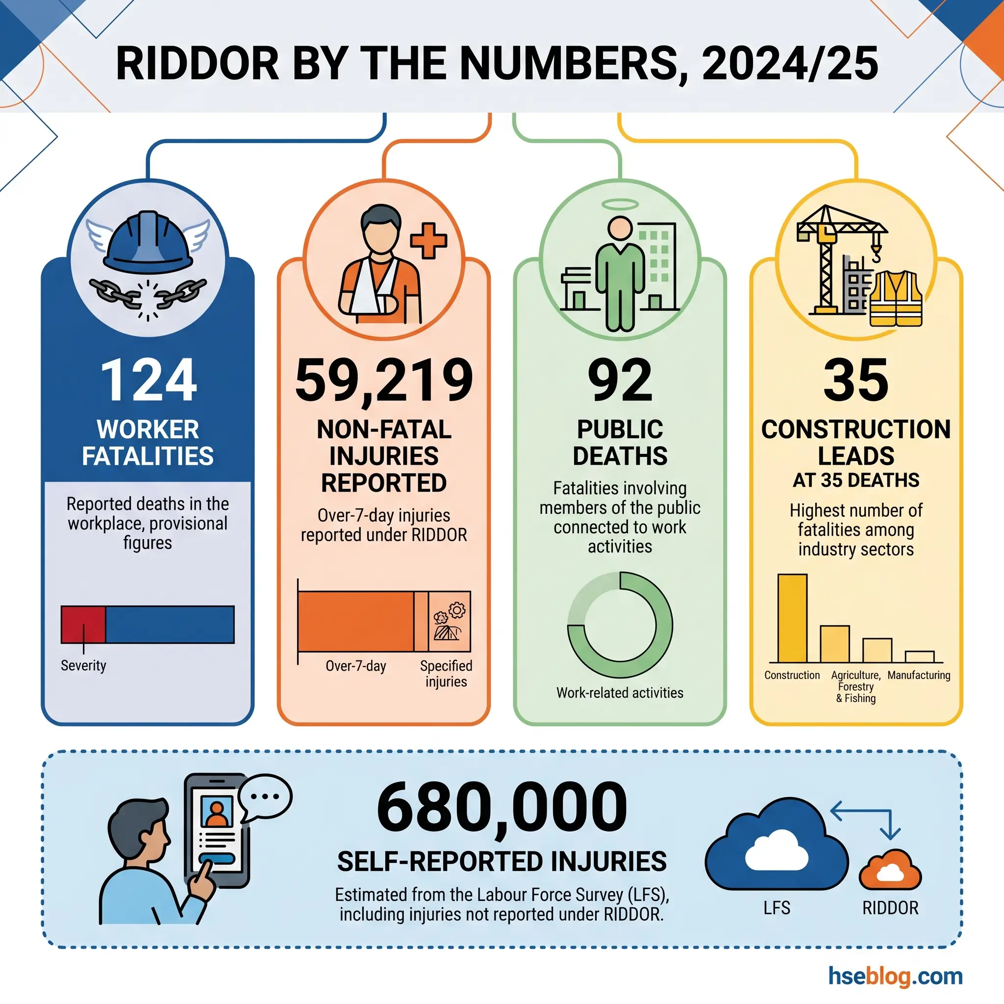 The HSE’s annual statistics for 2024/25, published in the summer of 2025, give the clearest current picture of what RIDDOR is capturing — and what it may be missing.