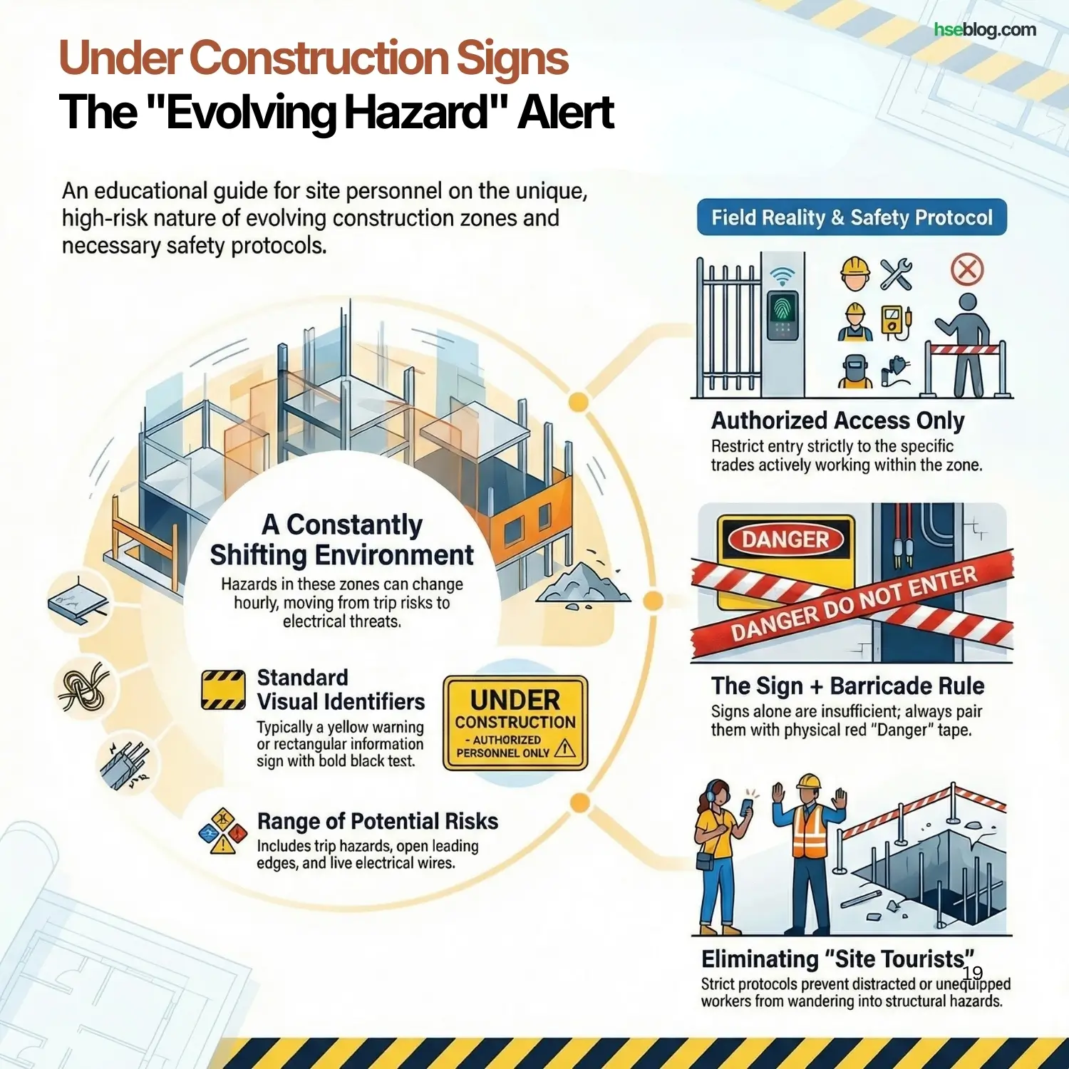 - Field Reality: “Warning: Deep Excavation” or “Warning: Overhead Load.” The biggest issue I see in the field is “Signage Blindness”—where so many yellow triangles are posted that workers stop seeing them.