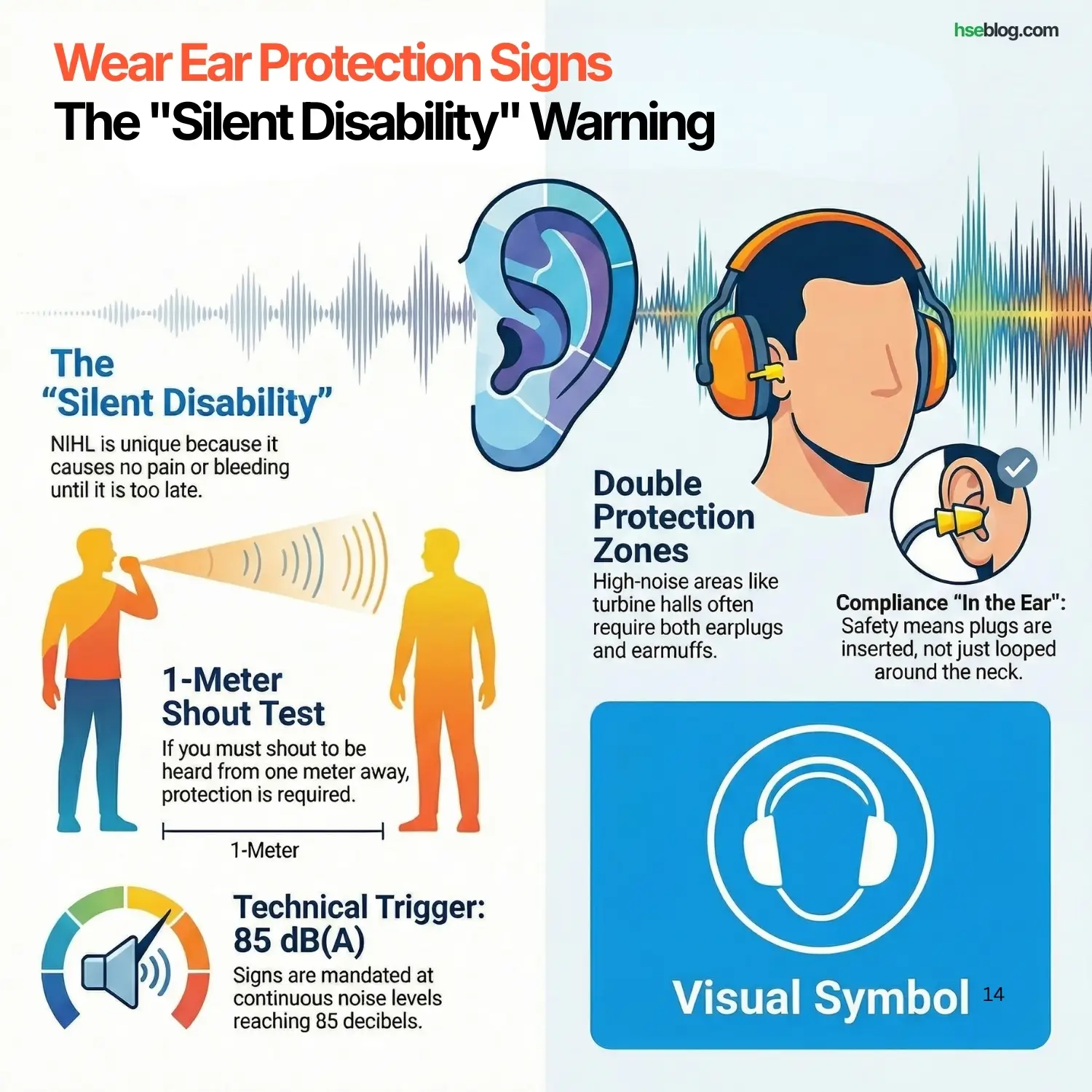 14. Wear Ear Protection Signs: The “Silent Disability” Warning