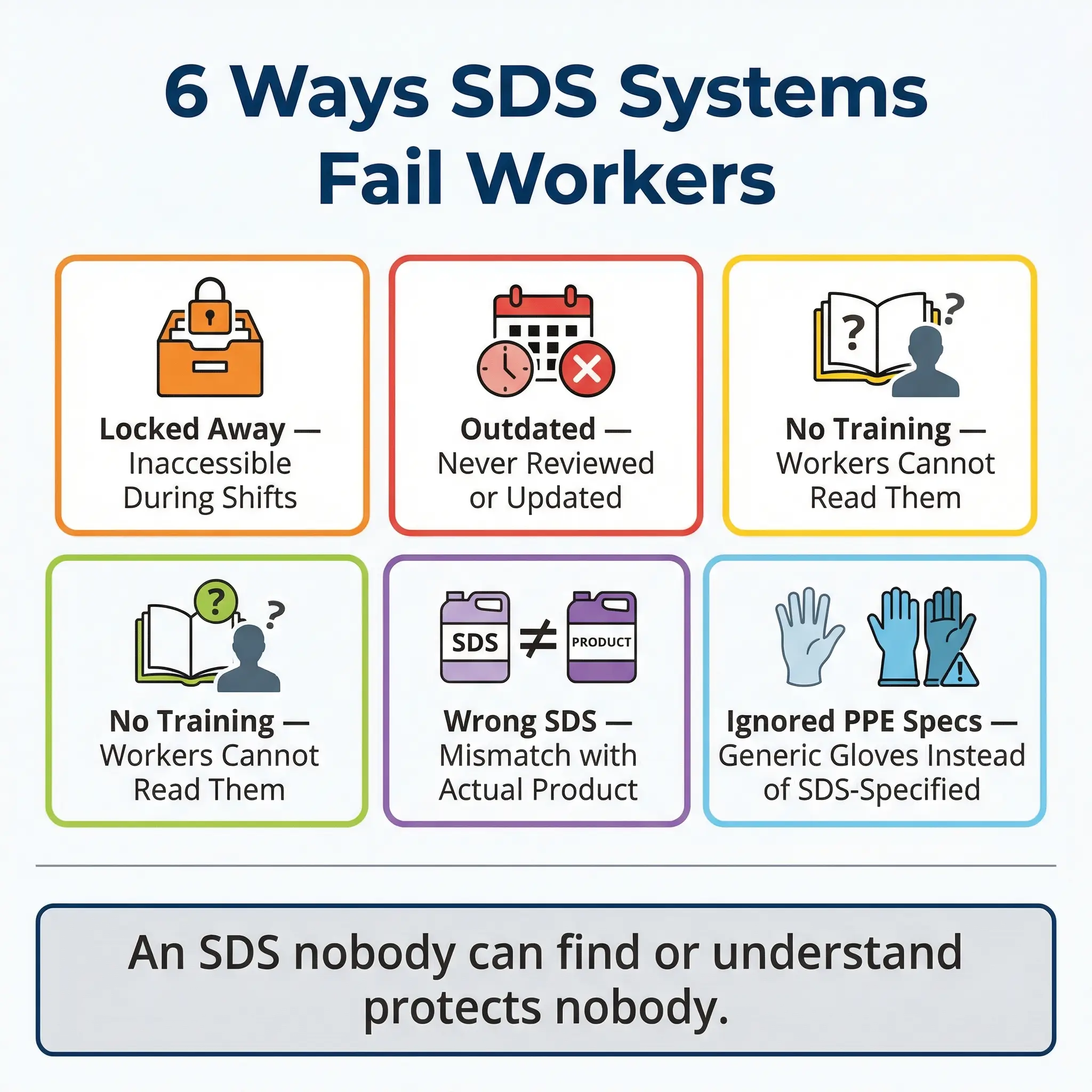 - An SDS is only useful if people can find it and understand it: Binders collecting dust in a locked office protect nobody. Accessibility, training, and practical interpretation save lives.