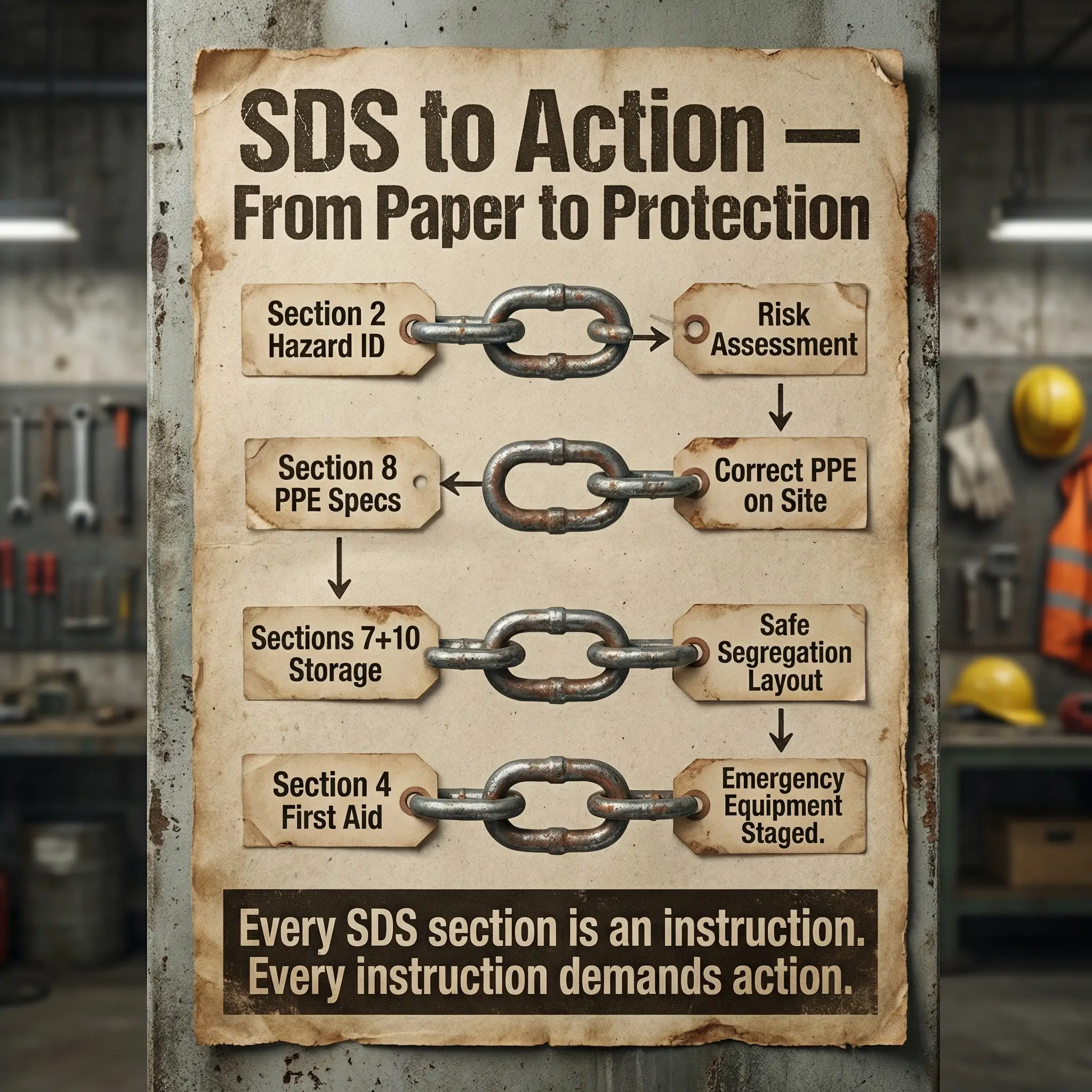The connection between SDS content and operational decisions follows a clear chain, and every link matters: